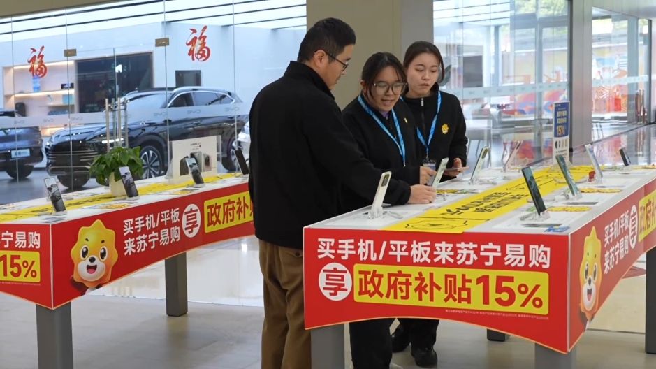 “以舊換新咨詢(xún)的比較多的是手機(jī)這一塊。因?yàn)槭謾C(jī)、平板和智能手環(huán)這一塊是新增的補(bǔ)貼。”蘇寧易購(gòu)廣西三祺廣場(chǎng)店店長(zhǎng) 廖永寧表示。