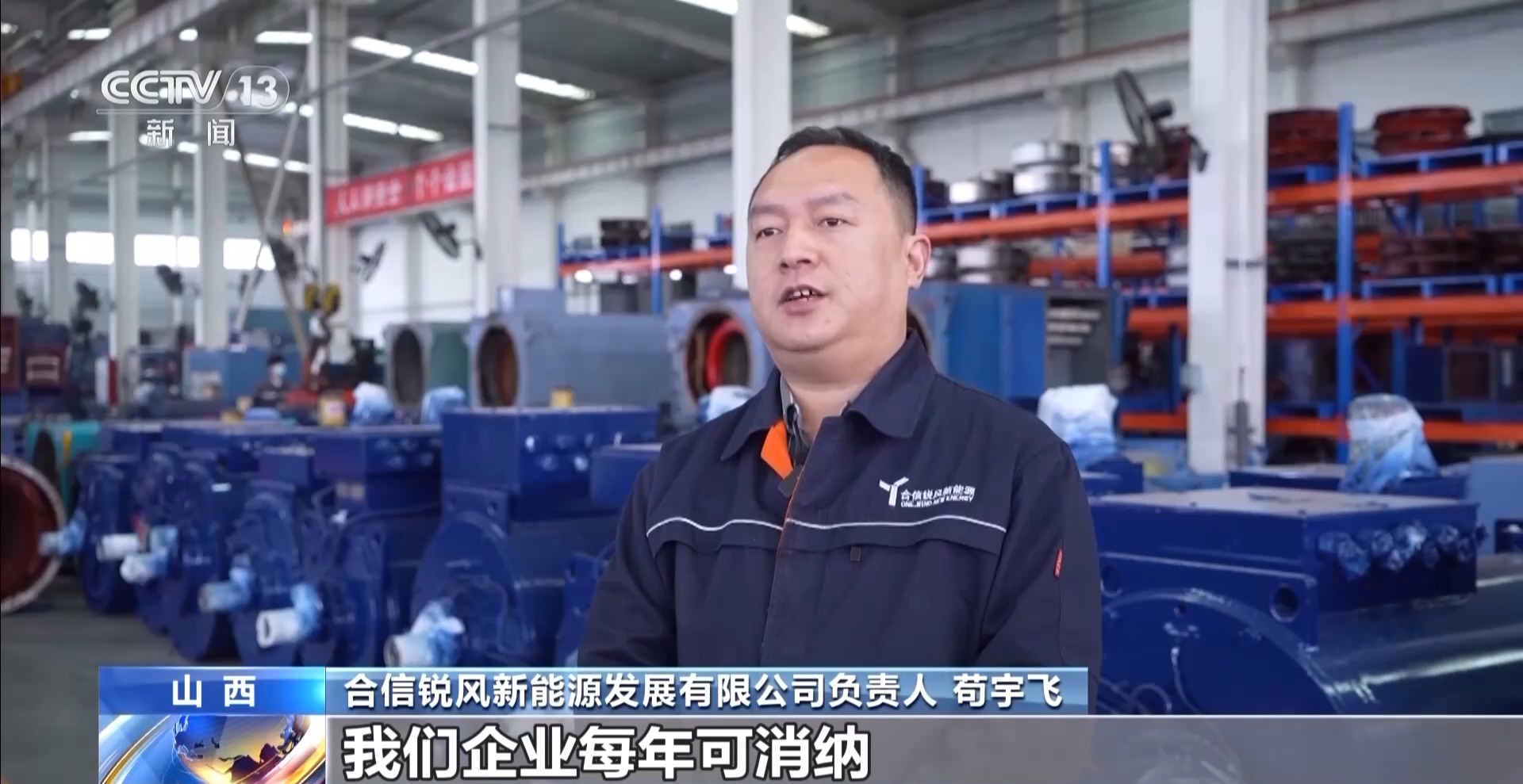 合信銳風新能源發展有限公司負責人 茍宇飛:我們企業每年可消納退役各類型風力發電機500余臺,通過風力發電機的回收再制造利用,每年可節約3000余噸鋼材,400余噸銅材,每年可創造約18億度的綠色電能,可減少二氧化碳排放100余萬噸。