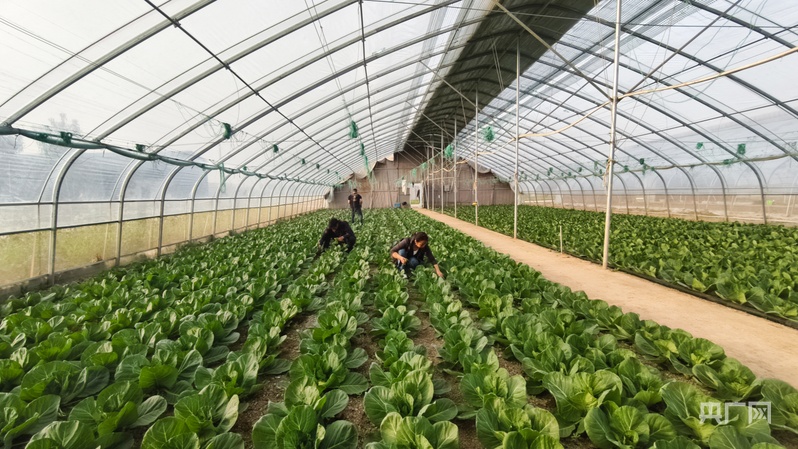 李王莊村蔬菜大棚里的甘藍長勢喜人(央廣網記者 郝振青 攝)