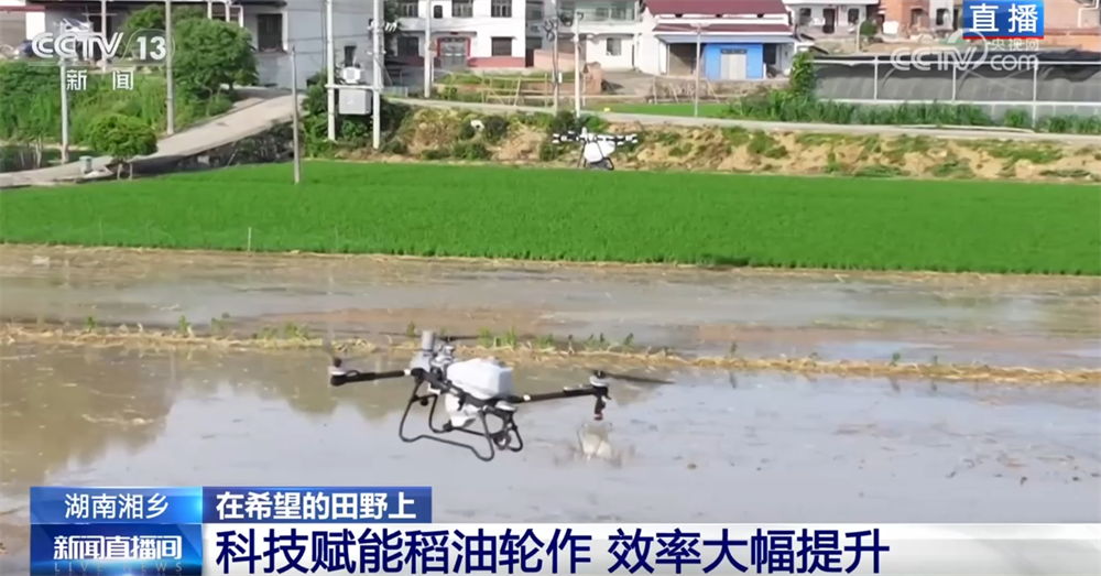 在這個階段,還有一件非常重要的工作就是施肥。眼下,施肥已經很少依靠人工了。現場,大型的農業無人機正在作業,肥料均勻灑在田里。無人機還能做到自動避障、自動調節噴灑量,配備光譜儀還可以檢測莊稼的長勢,作業1畝地只需要不到20秒。