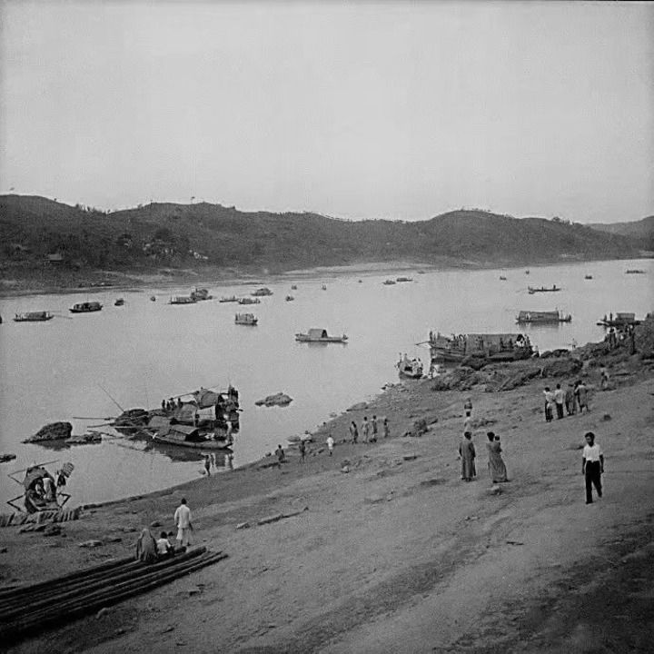 科研機(jī)構(gòu)、高校內(nèi)遷李莊時(shí)在碼頭搬運(yùn)行李的老照片。(李莊古鎮(zhèn)景區(qū)管委會(huì)供圖)