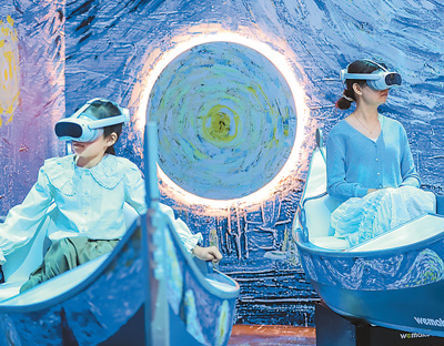 4月20日,游客在山東青島世博園XR梵高數字藝術體驗館進行數字產品體驗。張 鷹攝(人民視覺)