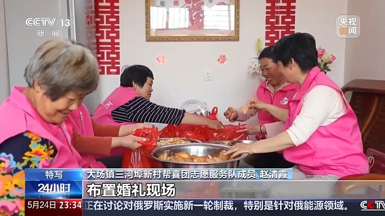 距離兒子的婚禮還有三天,三河埠村村民魏祥年家里已經忙碌起來。陪著老魏夫婦一起忙活的,除了親友,還有好幾位穿著粉色志愿服務馬甲的大姐。