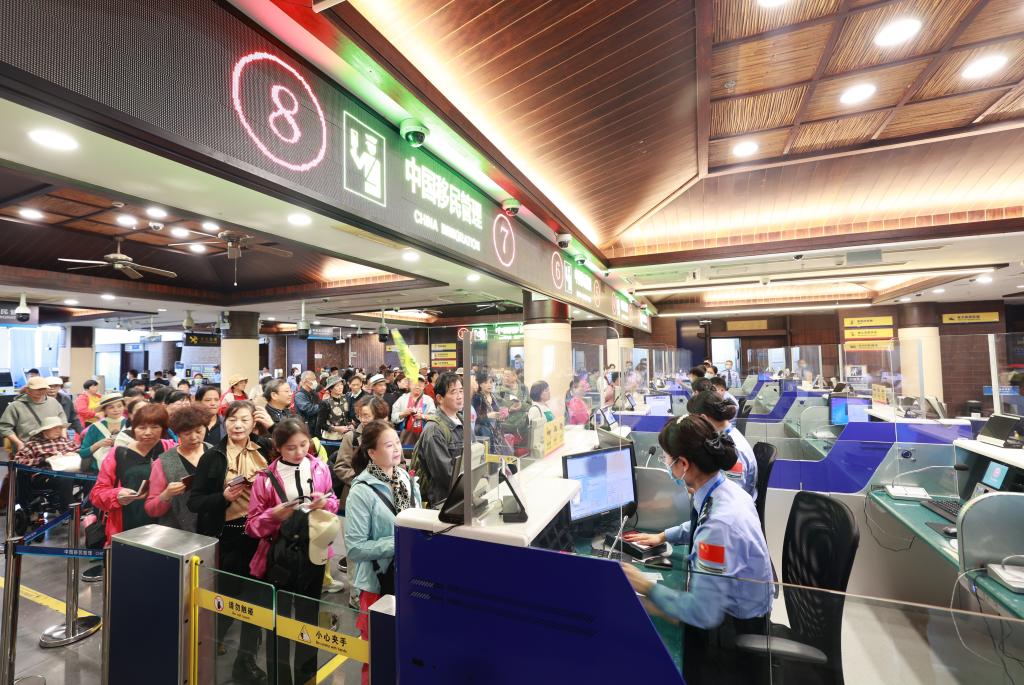 1月3日,在三亞鳳凰島國際郵輪港口岸,邊檢部門為郵輪旅客辦理通關手續。(楊冠宇 攝)
