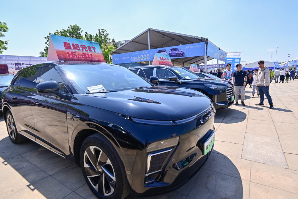5月3日,消費(fèi)者在山東省青州市舉辦的汽車·房產(chǎn)家居文化節(jié)上參觀選購展出的汽車。新華社發(fā)(王繼林?jǐn)z)