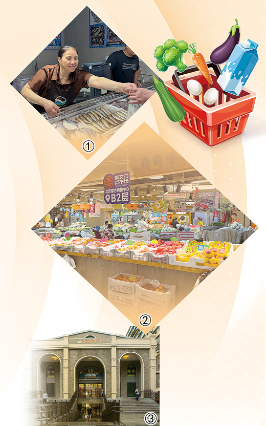 圖②:位于合景·摩方購物中心內的新崇文門菜市場,貨架上各類水果、蔬菜琳瑯滿目。本報記者 李君強攝