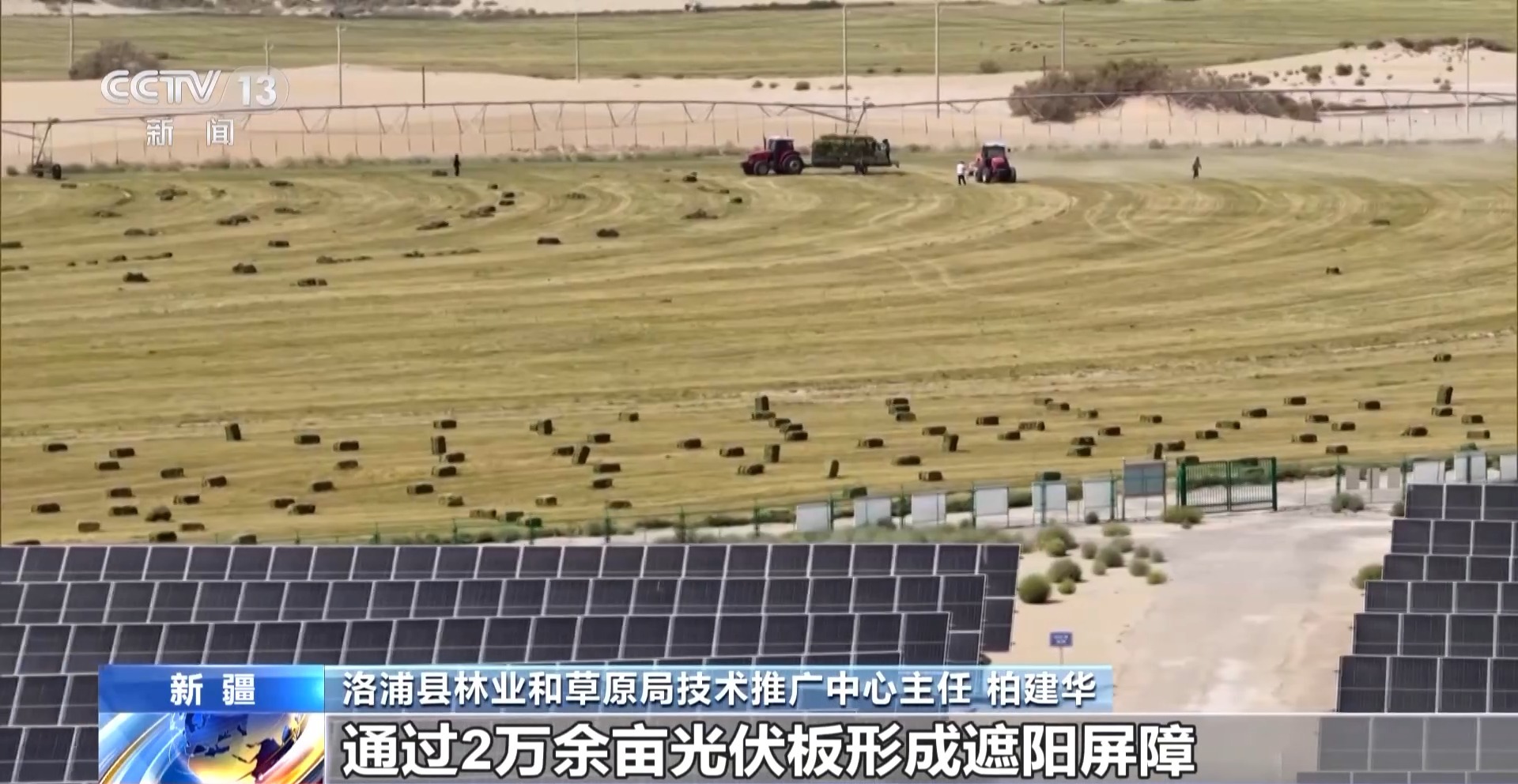 洛浦縣林業和草原局技術推廣中心主任 柏建華:光伏板不僅能發電,還改變了沙漠生態。通過2萬余畝光伏板形成遮陽屏障,使地表溫度下降3~5℃,降低了沙漠水汽蒸發,土壤含水率提升20%左右,作物存活率顯著提高。