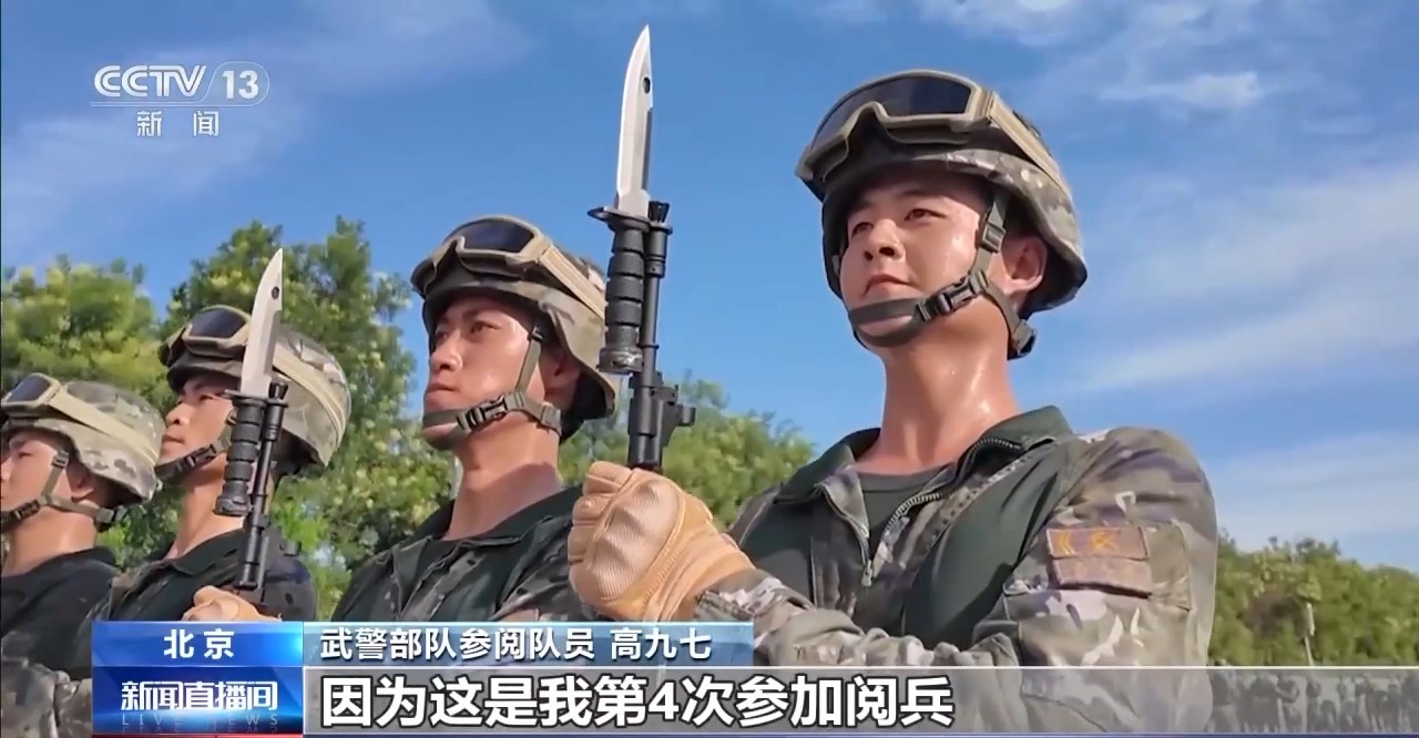 武警部隊方隊方隊長 崔曉偉:目前我們已經進入最后的沖刺階段,在紀念抗戰勝利80周年紀念日當天,以最昂揚的精神狀態、最標準規范的受閱動作,光榮地接受黨和人民檢閱,接受習主席檢閱。