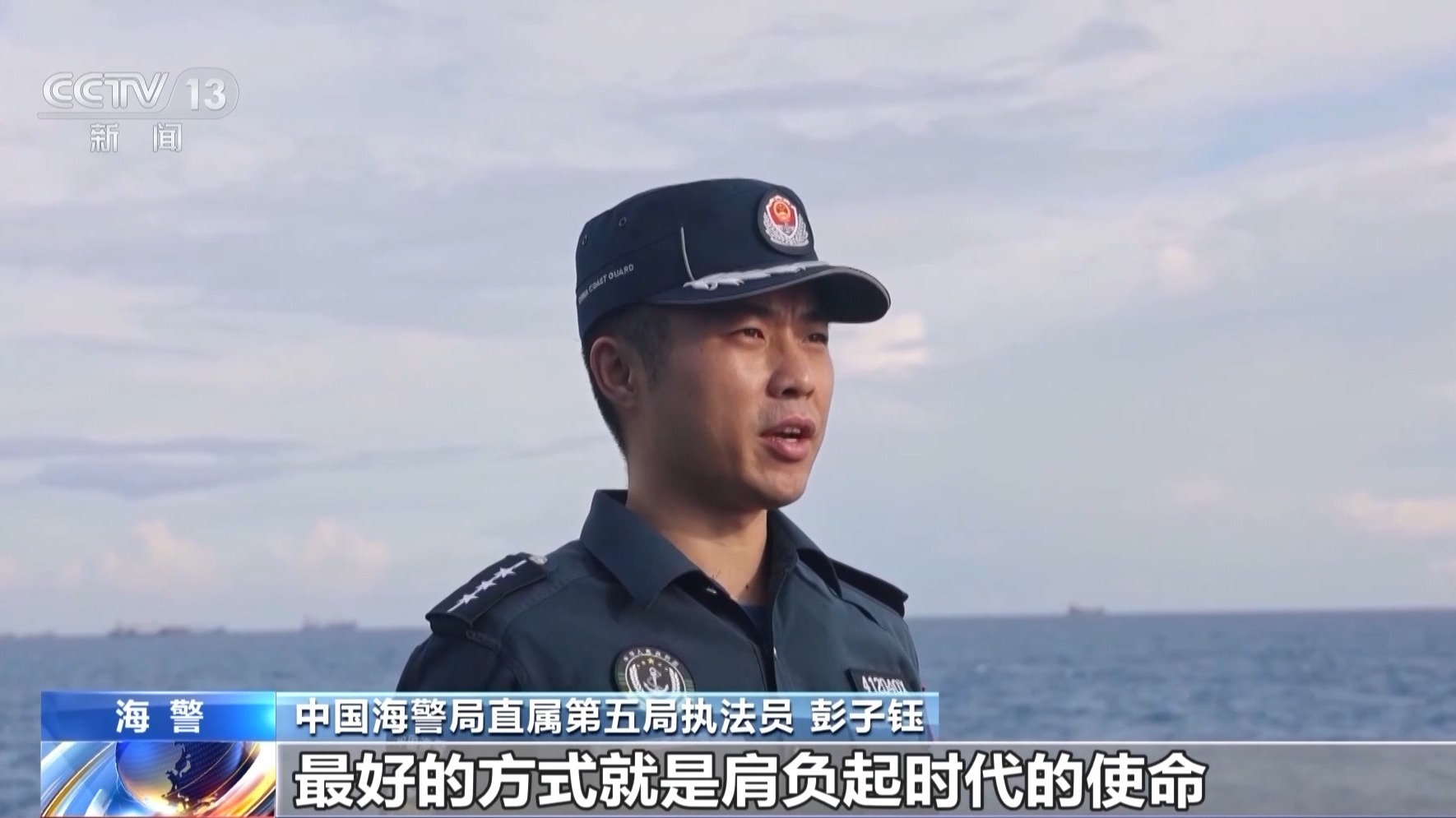 中國海警局直屬第五局執(zhí)法員 彭子鈺:紀(jì)念九一八,最好的方式就是肩負(fù)起時(shí)代的使命。我們堅(jiān)守在海上維權(quán)執(zhí)法第一線,就是要用實(shí)際行動(dòng)告慰先烈:祖國的萬里海疆,有我們?cè)冢?qǐng)人民放心!