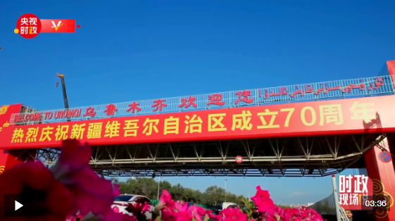 中共中央總書(shū)記、國(guó)家主席、中央軍委主席習(xí)近平率中央代表團(tuán)23日下午乘專機(jī)抵達(dá)烏魯木齊,出席新疆維吾爾自治區(qū)成立70周年慶?;顒?dòng)。14時(shí)20分許,習(xí)近平乘坐的專機(jī)在天山國(guó)際機(jī)場(chǎng)降落,等候在停機(jī)坪的新疆各族各界群眾熱烈歡呼。習(xí)近平走下舷梯時(shí),少先隊(duì)員獻(xiàn)上鮮花。各族群眾代表身著民族服飾,載歌載舞,歡迎總書(shū)記的到來(lái),表達(dá)對(duì)總書(shū)記的衷心祝福。