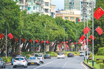 為熱烈慶祝中華人民共和國成立76周年,香港和澳門街頭裝扮一新,處處洋溢著喜慶的節(jié)日氣氛。五星紅旗與港澳區(qū)旗迎風(fēng)飄揚,祝福標(biāo)語和慶祝海報在街頭巷尾隨處可見。港澳特區(qū)政府與社會各界攜手推出了一系列豐富多彩的慶祝活動和優(yōu)惠措施。
