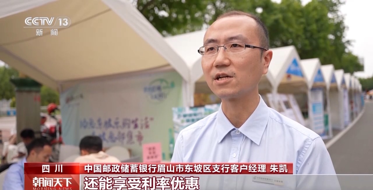 中國郵政儲蓄銀行眉山市東坡區支行客戶經理 朱凱:針對本次消費季活動,我們專門開通了消費貸款綠色審批通道,客戶可以直接線上辦理消費貸款,實時審批,快速放款,還能享受利率優惠。