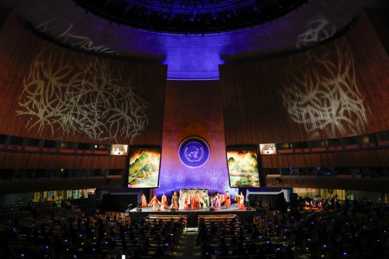 當地時間2025年6月9日,中國在紐約聯合國總部舉辦“文明對話國際日”主題活動,包括主題對話會、文明交流互鑒長卷展覽以及“跨越山海的文明對話”文藝演出等活動。 中新社記者 廖攀 攝