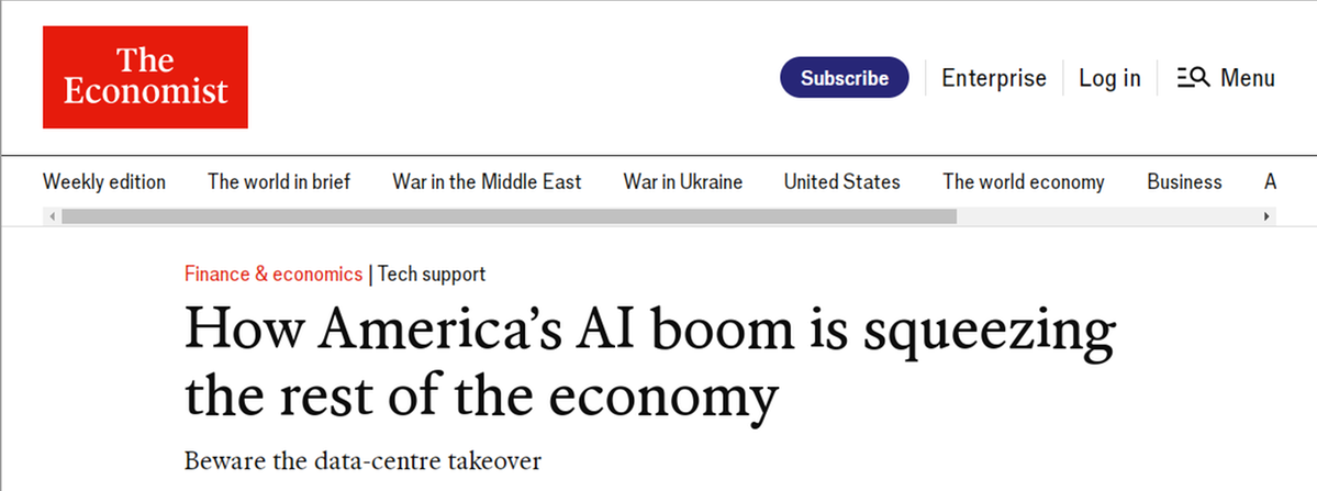 英國《經濟學人》雜志近期評論指出,除了人工智能之外,美國經濟的大部分領域似乎都顯得低迷。AI爆發式增長雖能“美化”數字,卻忽略了美國實體經濟的空心化,導致GDP含金量低。