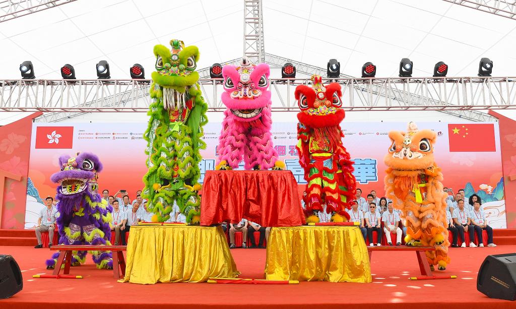 6月1日,在香港舉辦的第三屆“家鄉市集嘉年華”開幕式上,演員在表演舞獅。