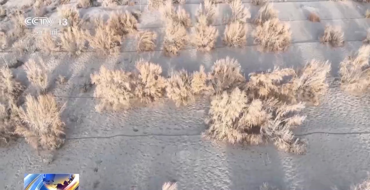 新疆阿瓦提縣林業和草原局生態修復科主任 努爾吉馬力·艾木都拉:把平地上的閥門關上,然后把全部壓力給到高處沙包上的滴灌管道。再生水來了,水源充足以后,現在成活率達到75%以上了。