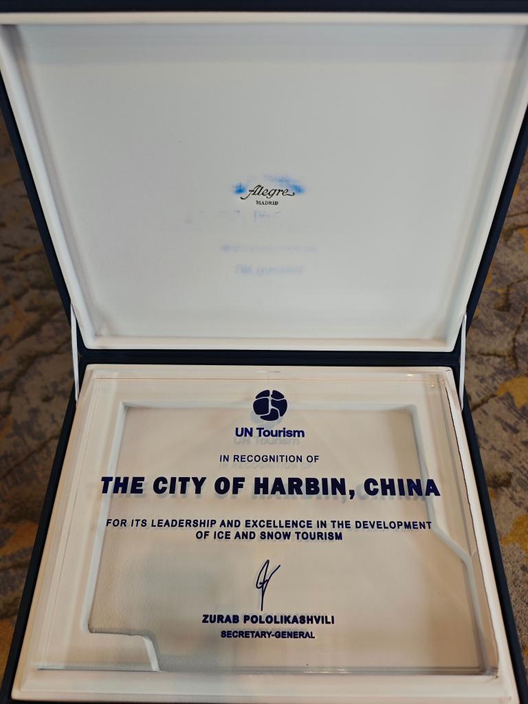 聯(lián)合國(guó)旅游組織授予哈爾濱“世界冰雪旅游卓越城市”稱號(hào)。(哈爾濱市委宣傳部供圖)