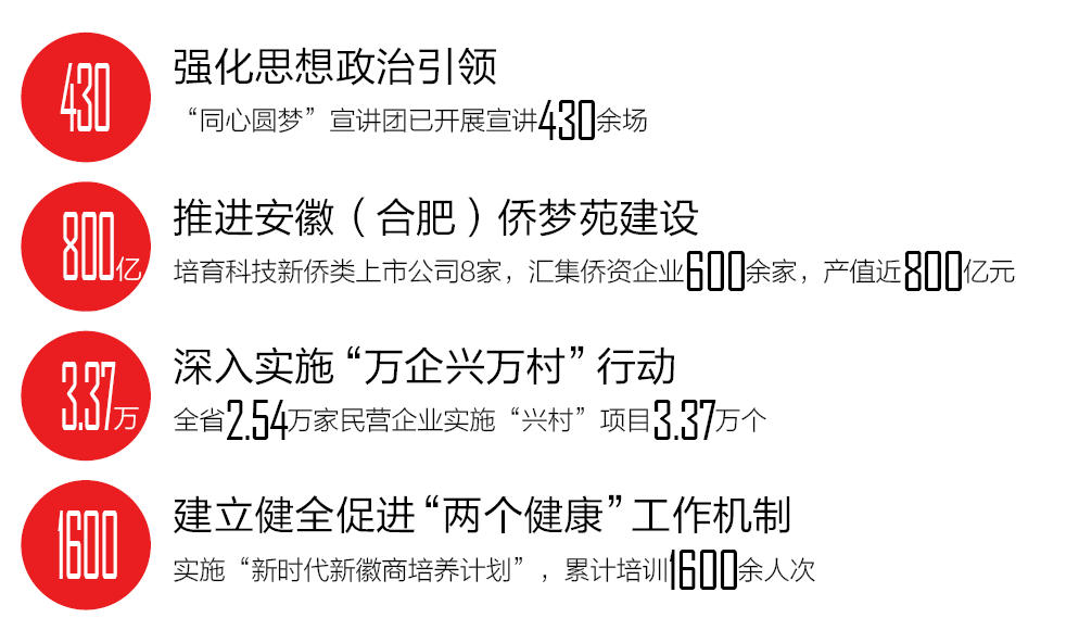 進一步發揮高校、國企等單位的重要陣地作用,建立黨外知識分子思想政治工作體系和長效機制,推進新的社會階層人士統戰工作實踐創新基地“精品工程”建設,加強網絡人士統戰工作,連續6年舉辦網絡人士座談會,連續5年舉辦“長三角網絡名人看安徽”,持續開展“江淮新力量·同心新作為”、“尋美·安徽”等品牌活動。