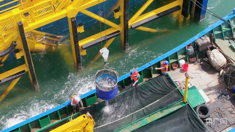 相比傳統的近岸養殖方式,深遠海養殖在大幅提升產能的同時,還可以有效降低人力成本。“以前養這么多魚要十幾個人,現在一個人就能管一個網箱,省了不少力!”陳俊鋒笑著介紹,深海水流急、水質好,養出的魚肉質緊實,口感接近野生,在市面上更能賣出好價格。