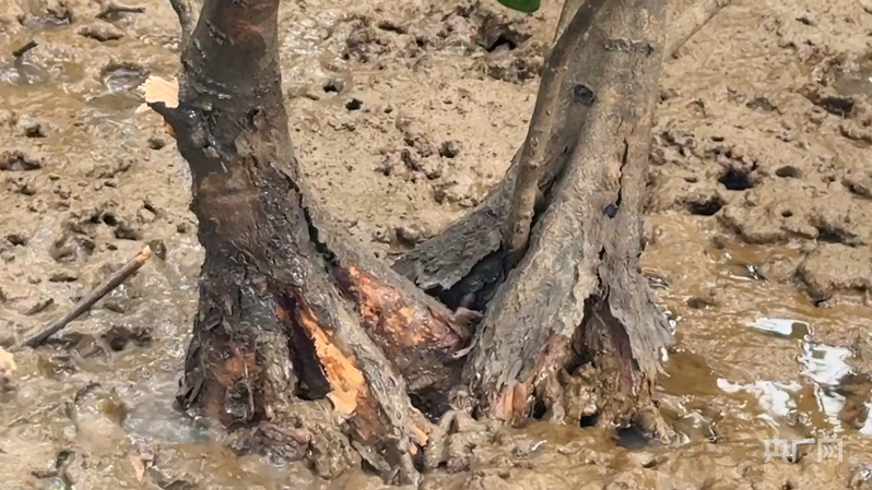 耐寒的紅樹品種根系已逐步適應玉環沿海水土(央廣網記者 李曉曉 攝)