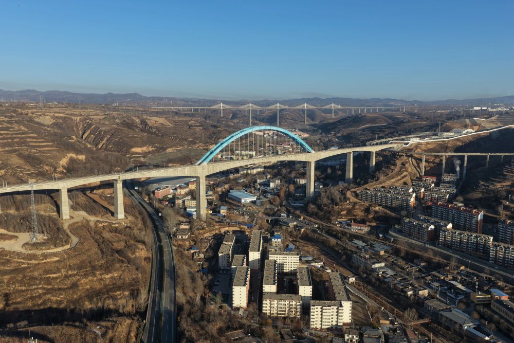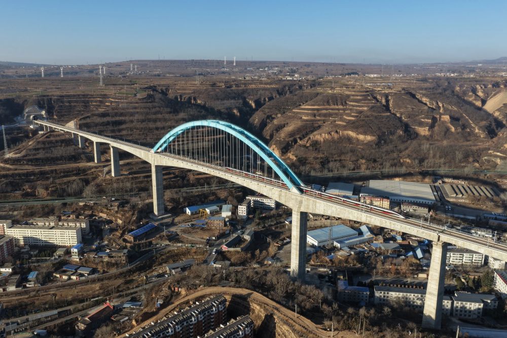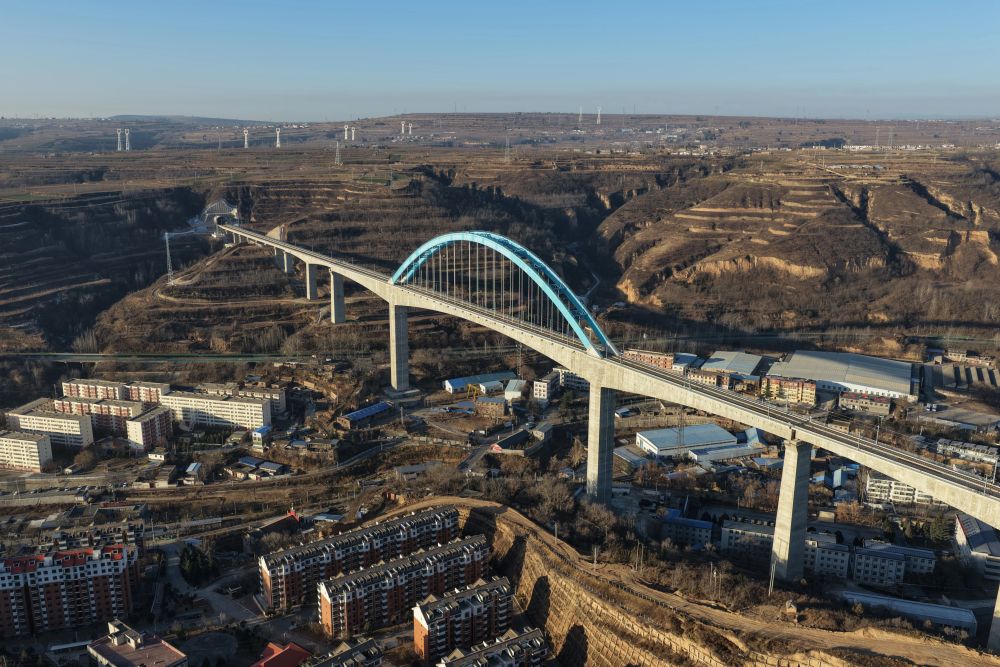 12月25日拍攝的西延高鐵王家河特大橋(無人機照片)。新華社記者 邢廣利 攝