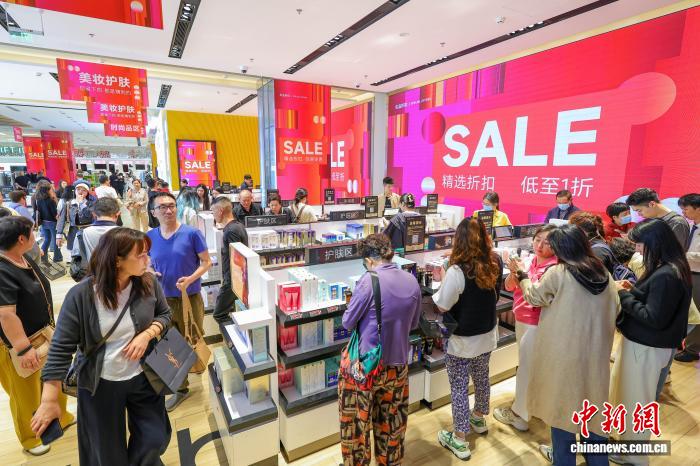 圖為元旦假期,cdf海口國際免稅城迎來購物熱潮,眾多游客前來選購心儀商品。 中新網記者 駱云飛 攝