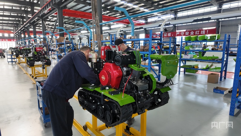 達州丘陵山區現代農林裝備專業園區的生產線上,工人們正在組裝農機裝備(央廣網記者 昌思榮 攝)