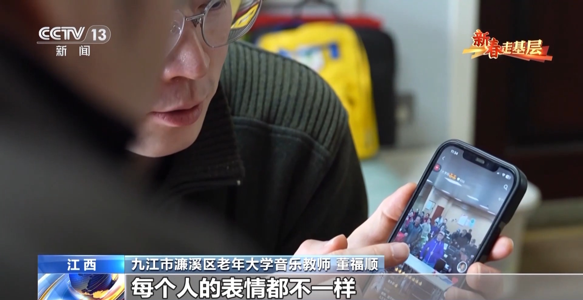 九江市濂溪區老年大學音樂教師 董福順:這些叔叔阿姨們很可愛,每個人的表情都不一樣,然后還有搗亂的,別人都在認真做作業他要去摸別人一下。最初發這個視頻,就是想讓老年人回到家里跟著練。然后發著發著網友就開始叫“大型認親現場”,然后就開始囑咐,“老師能不能晚點放學,不然又回來念叨”。然后你看,“都挺好,給我爸爸報上”,其實你看都是在關心自己的長輩,我們其實都想去對父母說我愛你,但是中國人很含蓄,所以在這里邊我看到了這一點。