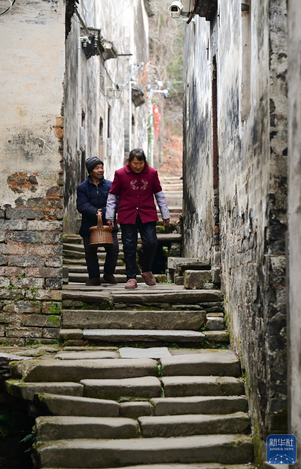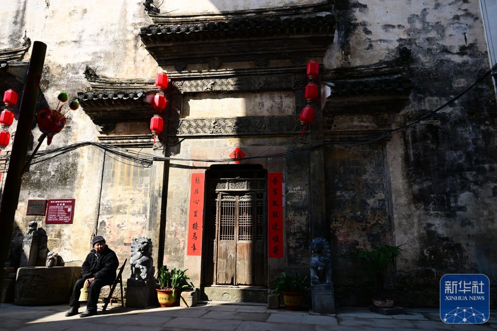 2月8日,村民在瞻淇村曬太陽。