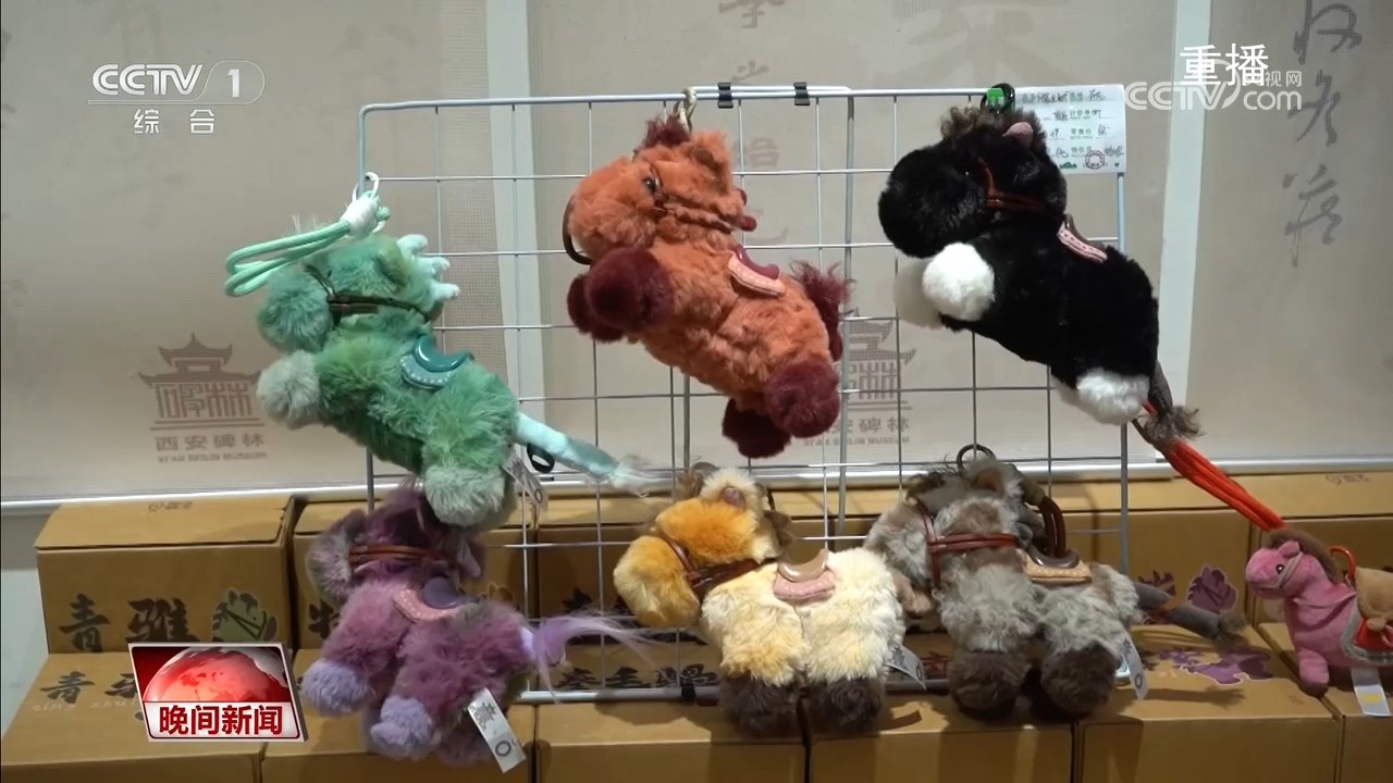 在西安碑林博物館,以唐代“昭陵六駿”石刻為原型的毛絨玩具集歷史文化和現代設計于一體,線下門店經常賣斷貨。