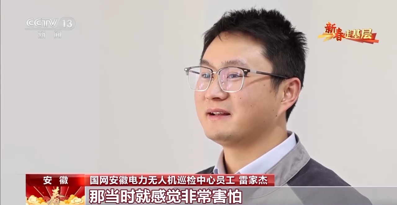 國網(wǎng)安徽電力無人機(jī)巡檢中心員工 雷家杰:第一次飛,就把無人機(jī)搞壞了。一架好幾萬,頂我一年的工資,當(dāng)時(shí)就感覺非常害怕。現(xiàn)場不敢飛了,一看飛機(jī)離塔那么近,我手抖,后來腿都抖。