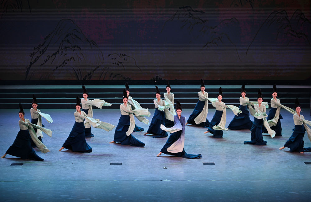 2023年7月29日,演員在聯歡會現場表演《只此青綠》。當晚,“青春 In Time”第31屆世界大學生夏季運動會運動員聯歡會在成都大運村藝術中心大劇場舉辦。聯歡會以魔術、舞蹈、演唱等藝術形式為橋梁,推動中外青年藝術家、運動員、大學生及志愿者代表互動交流,營造歡樂、友愛的大運氛圍。