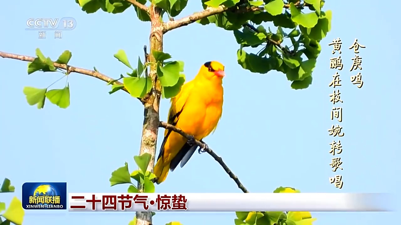 “倉庚鳴”,倉庚也就是黃鸝,鳥兒們感知到春意的律動,在枝間婉轉(zhuǎn)歌唱。