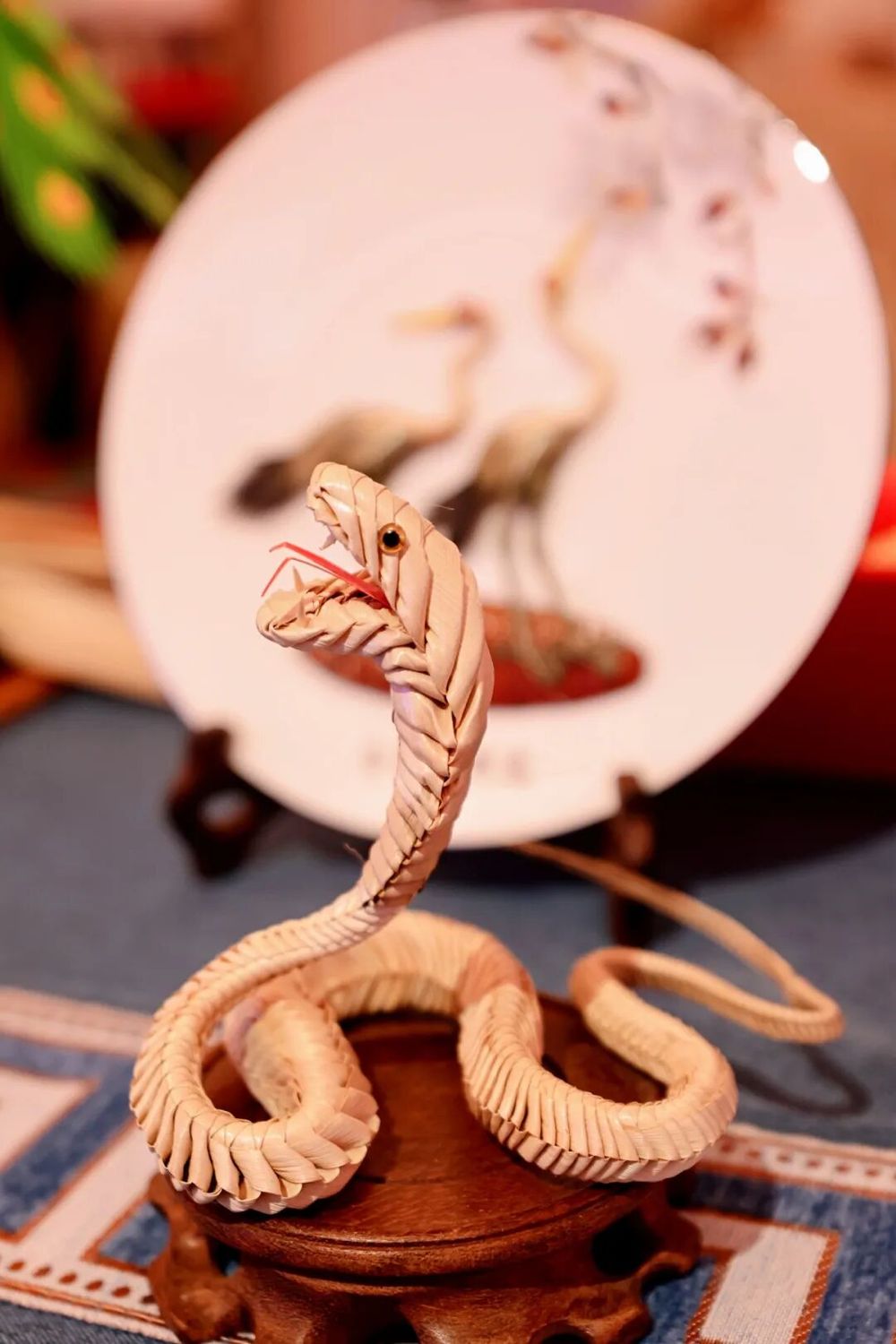 羅志勇棕編作品《醒獅》:選用優質棕櫚嫩葉經過采葉、劃葉、熏葉、泡葉、露葉、曬葉、高溫染色、編制等精心制作而成,作品色彩鮮艷,活靈活現。