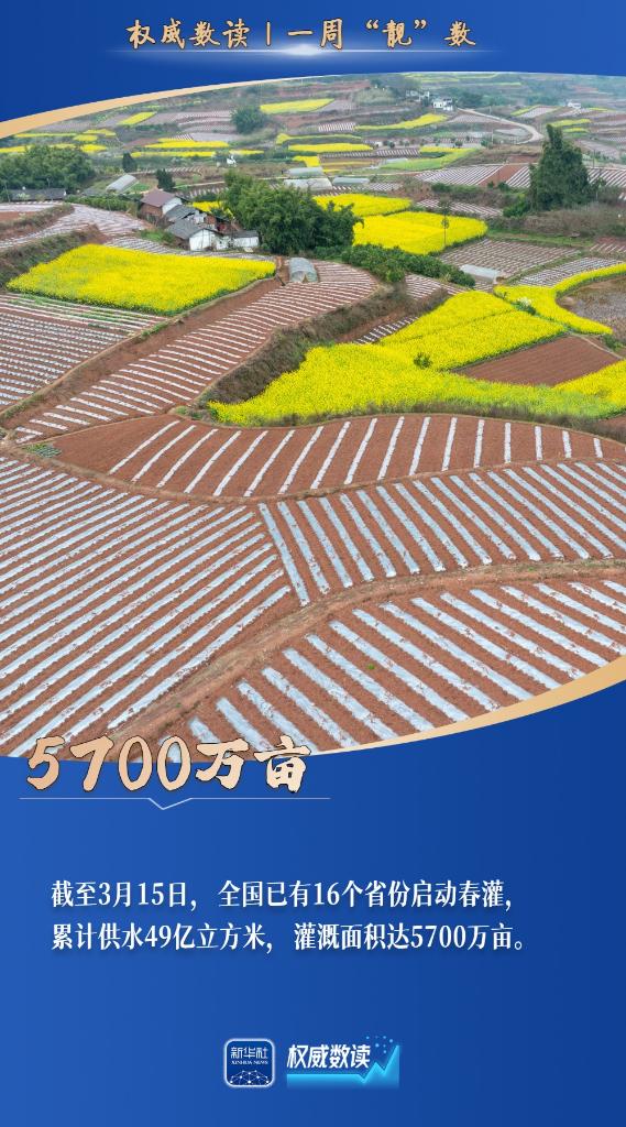 今年前2個月,我國郵政行業寄遞業務量累計完成331.4億件;全國規模以上工業增加值同比增長6.3%;截至3月15日,全國已有16個省份啟動春灌,累計供水49億立方米,灌溉面積達5700萬畝……本周,這些數據,最值得關注!