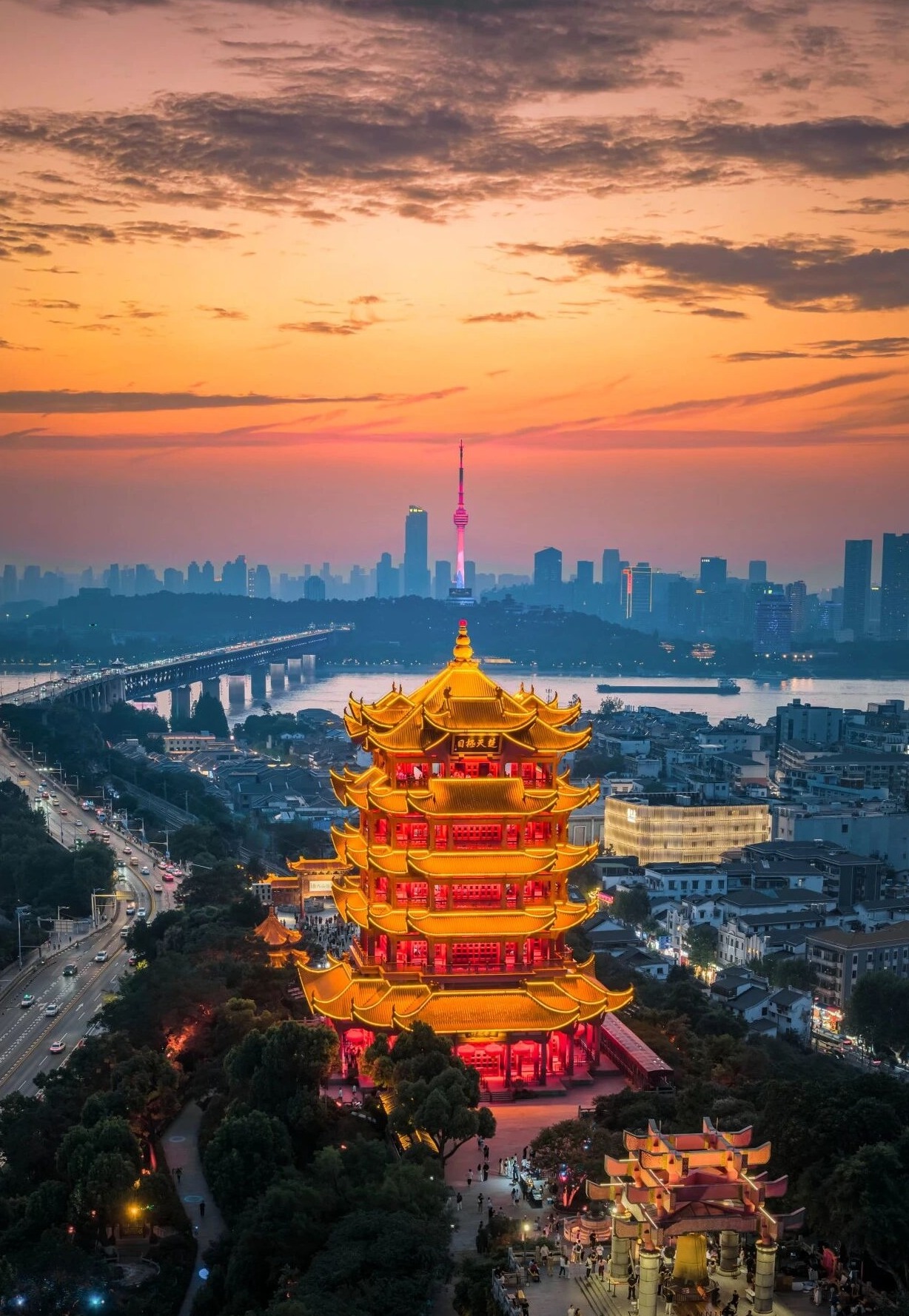 四百多年后,全國各地?cái)?shù)萬名游客相聚于武漢龜山公園,在他們的鏡頭里,龜蛇兩山的新綠漫上山巔,長江大橋的鋼索牽著流云,黃鶴樓的飛檐挑著粉櫻。