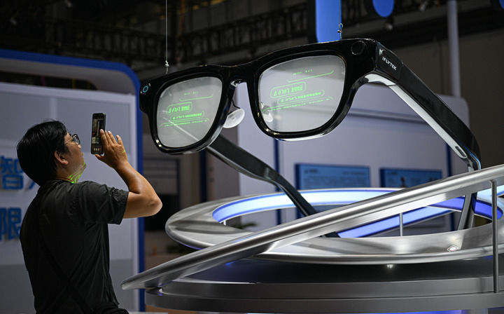 4月10日在第六屆消博會(huì)主會(huì)場(chǎng)拍攝的AI眼鏡模型。新華社記者蒲曉旭 攝
