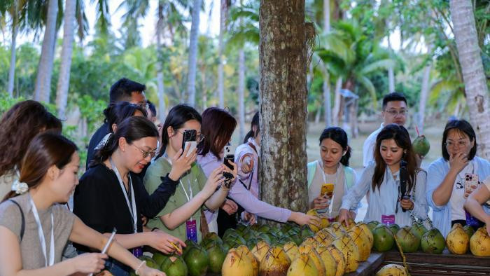 “椰子樹渾身是寶,椰肉鮮嫩、椰汁爽口、椰干當梁、椰殼可雕、椰根入藥。”椰子所辦公室主任賈永立說。對海外華媒人而言,這里是一個“可體驗、可傳播、可共情”的海南故事。澳大利亞澳華電視傳媒董事長任傳功感嘆,園區匯集全球諸多椰子品種,既是活態植物基因庫,也是立體的熱帶植物百科全書。游客不僅能看、能學,還能通過椰子制品、椰子美食、椰雕工藝,真切感受椰子如何融入文昌人的衣食住行。