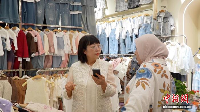 一大早,在織里鎮沿街的一家童裝店內,負責人文曉莉正忙著接待兩位來自烏茲別克斯坦的客商。雙方圍繞童裝款式、價格、訂單細節展開細致洽談。