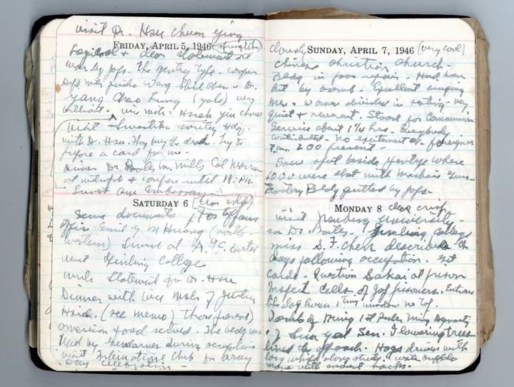在仔細翻閱6本日記后,專家一致認為:日記均為薩頓親筆書寫,記錄了1946年至1948年他執行東京審判任務期間的諸多細節,此前中文世界未見任何記載,是南京大屠殺檔案史檔案的重大發現。