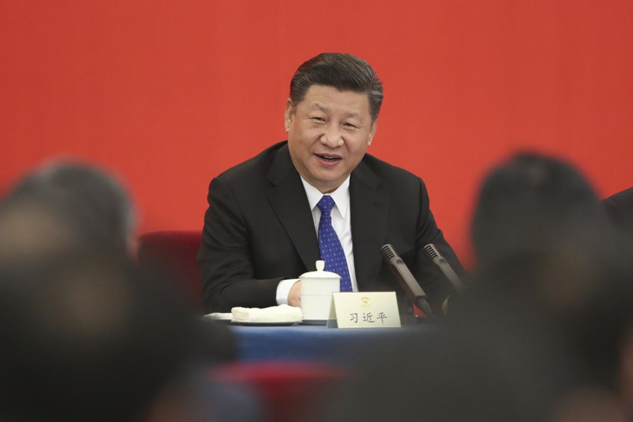 2018年3月4日下午,中共中央總書記、國家主席、中央軍委主席習近平看望參加全國政協十三屆一次會議的民盟、致公黨、無黨派人士、僑聯界委員,并參加聯組會,聽取意見和建議。 新華社發(盛佳鵬 攝)