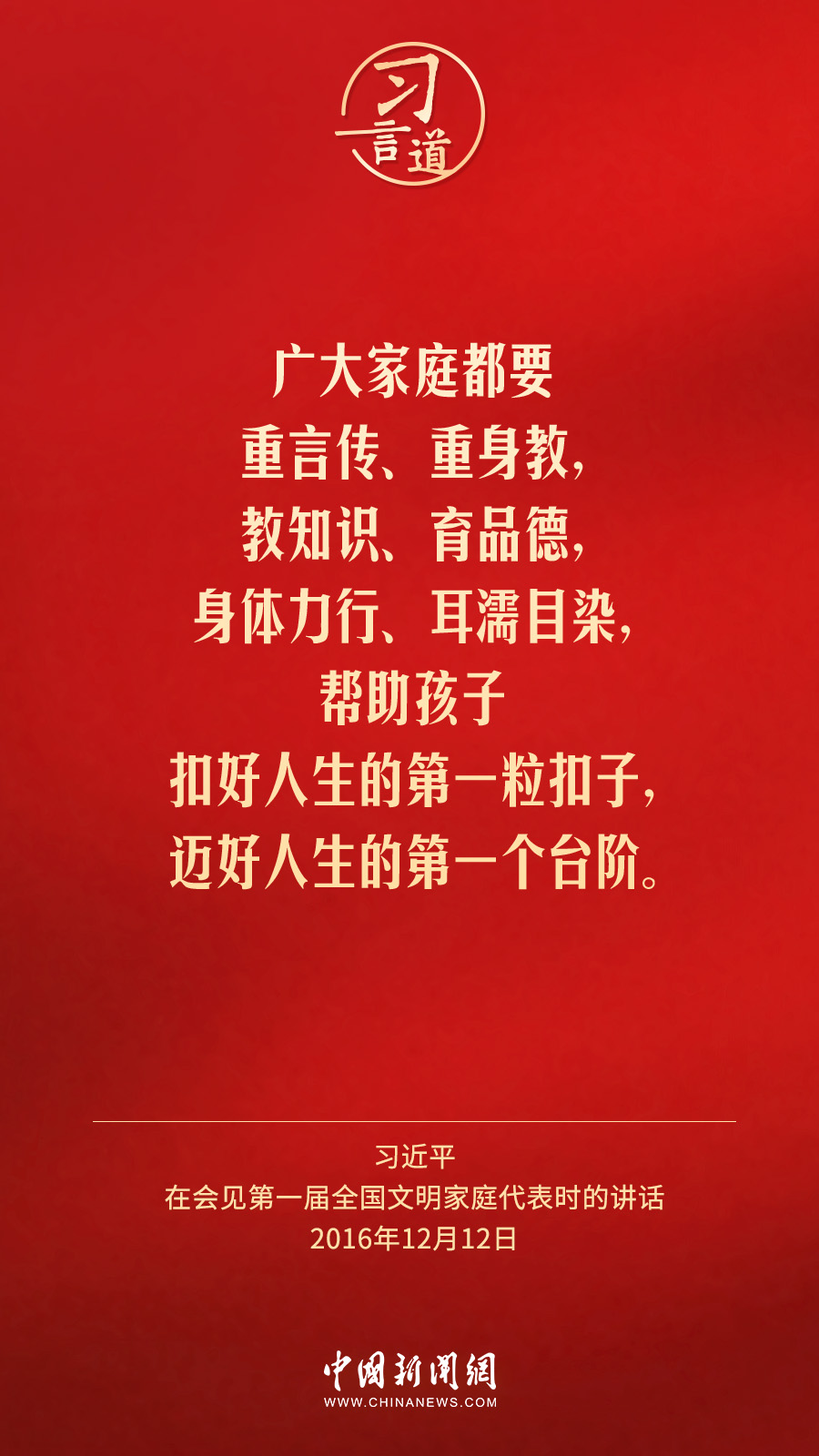 2月1日出版的《求是》雜志發表中共中央總書記、國家主席、中央軍委主席習近平2016年12月12日在會見第一屆全國文明家庭代表時講話的一部分《注重家庭,注重家教,注重家風》。