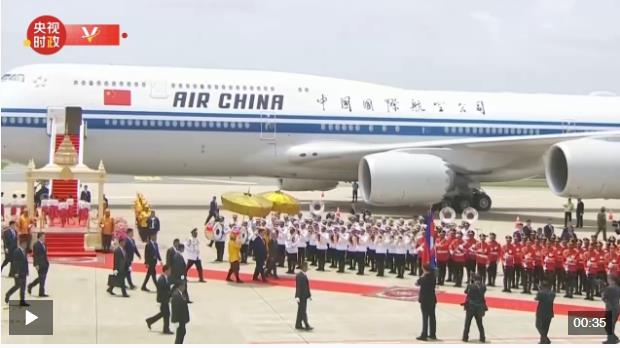 當地時間4月17日上午,國家主席習近平在柬埔寨國王西哈莫尼的陪同下檢閱柬埔寨儀仗隊。
