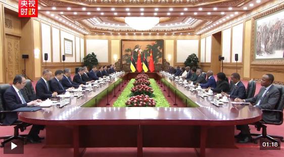 4月21日下午,國家主席習近平在北京人民大會堂同來華進行國事訪問的莫桑比克總統查波舉行會談。