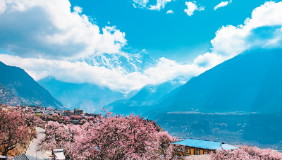 南迦巴瓦峰位于喜馬拉雅山脈東端,山體終年積雪,常被云霧籠罩。索松村位于林芝市米林縣,是欣賞南迦巴瓦峰景觀的最佳位置之一。每當春暖花開時,沿江數十里的桃花次第盛開,獨特的景色吸引著各地游客慕名而來。