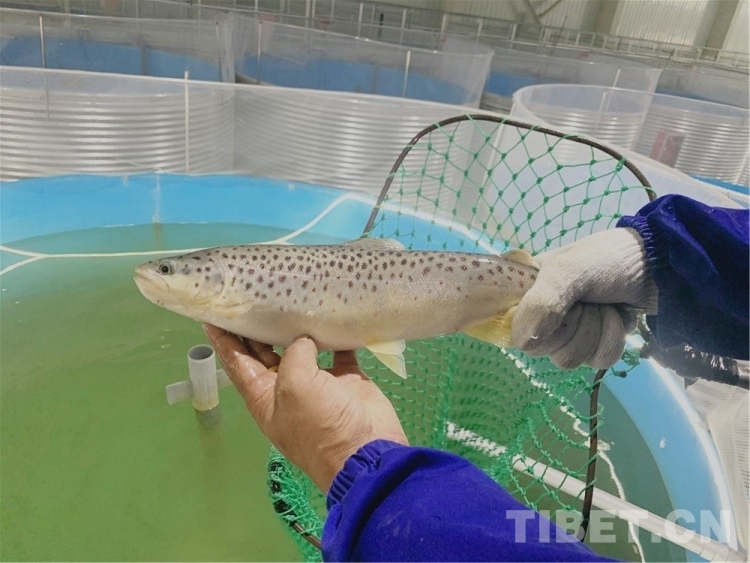 同時,“綠水青山就是金山銀山”的理念在這里深入人心,生態保護在產業園各個環節都有體現。園區內的露天養殖池內一角,有水池噴著水花,時不時能看到有魚躍出水面。據貢布介紹,這是凈水系統。養殖場的水從沒有污染的瑪曲河引進后,沉淀排沙后引入生物池,進行凈化,增氧提高溶氧量,還要經過消毒后才能用于養殖。在“魚寶寶”的“搖籃”——幼苗孵化區的藍色圓形塑料筒使用的是雪山上引下的泉水。據悉,養殖場的排水也是經過經過嚴格的沉淀處理后才可排放出去。