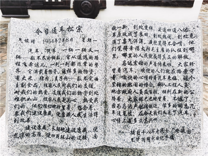 為更好地讓廣大干部群眾和八方游客了解筑路運輸?shù)钠D難困苦、順利通車波密時的動人場景,2021年12月,波密縣對廣場進行了提檔升級,從尊重歷史的角度,進一步論證規(guī)范了廣場名稱。“波密通車紀念廣場”八個鮮紅大字仿佛在講述那段激情燃燒的崢嶸歲月,紅色的碑文篆刻著筑路部隊驚心動魄修筑康藏公路時的艱辛與磨難,王笑雨同志的日記記錄著汽車駛入波密時干部群眾臉上的激動與新奇……教育、激勵和引導廣大干部群眾堅定不移感黨恩、聽黨話、跟黨走。(中國西藏網(wǎng) 圖文/波密縣組織部紅色工作專班)