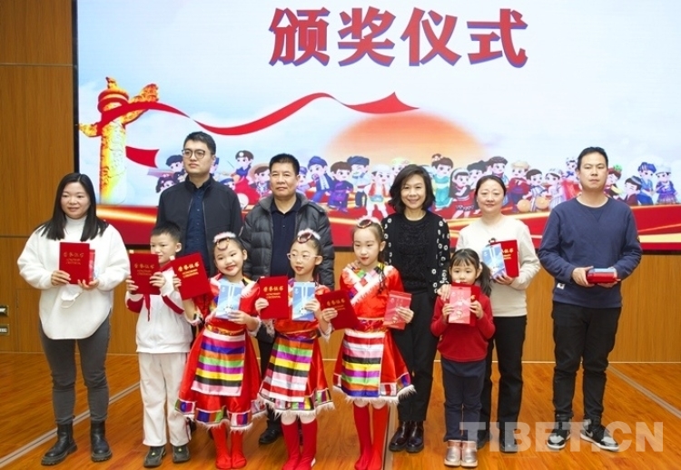 西藏文化博物館負責人扎呷、中國人民大學附屬中學第二分校校長龔月萍先后致辭?;顒又校袊貙W研究中心西藏文化博物館向捐獻西藏主題作品的畫家吳茜女士頒發證書,并發布關于涉藏文物捐贈的倡議書。同時,為“童心永向黨,喜迎二十大”少年兒童書畫作品展的活動組織者、指導老師以及獲獎小作者頒發了獎品和證書。