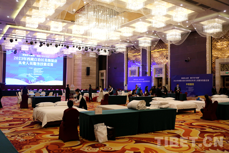 中國西藏網(wǎng)訊 5月11日,由西藏自治區(qū)旅游發(fā)展廳、西藏自治區(qū)總工會、共青團西藏自治區(qū)委員會、西藏自治區(qū)婦女聯(lián)合會主辦,西藏旅游飯店業(yè)協(xié)會承辦的2023年西藏自治區(qū)星級飯店從業(yè)人員服務(wù)技能競賽在拉薩開賽。45名選手圍繞中餐宴會擺臺、西餐宴會擺臺、中式鋪床及夜床服務(wù)、前廳服務(wù)4個項目同臺競技。