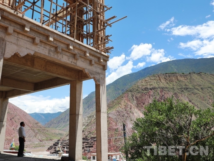 在村子里一間傳統水磨坊旁邊的空地上,加達村村民次仁鄧培的新房主體支架已經完成,幾個建筑工人正在忙碌著。